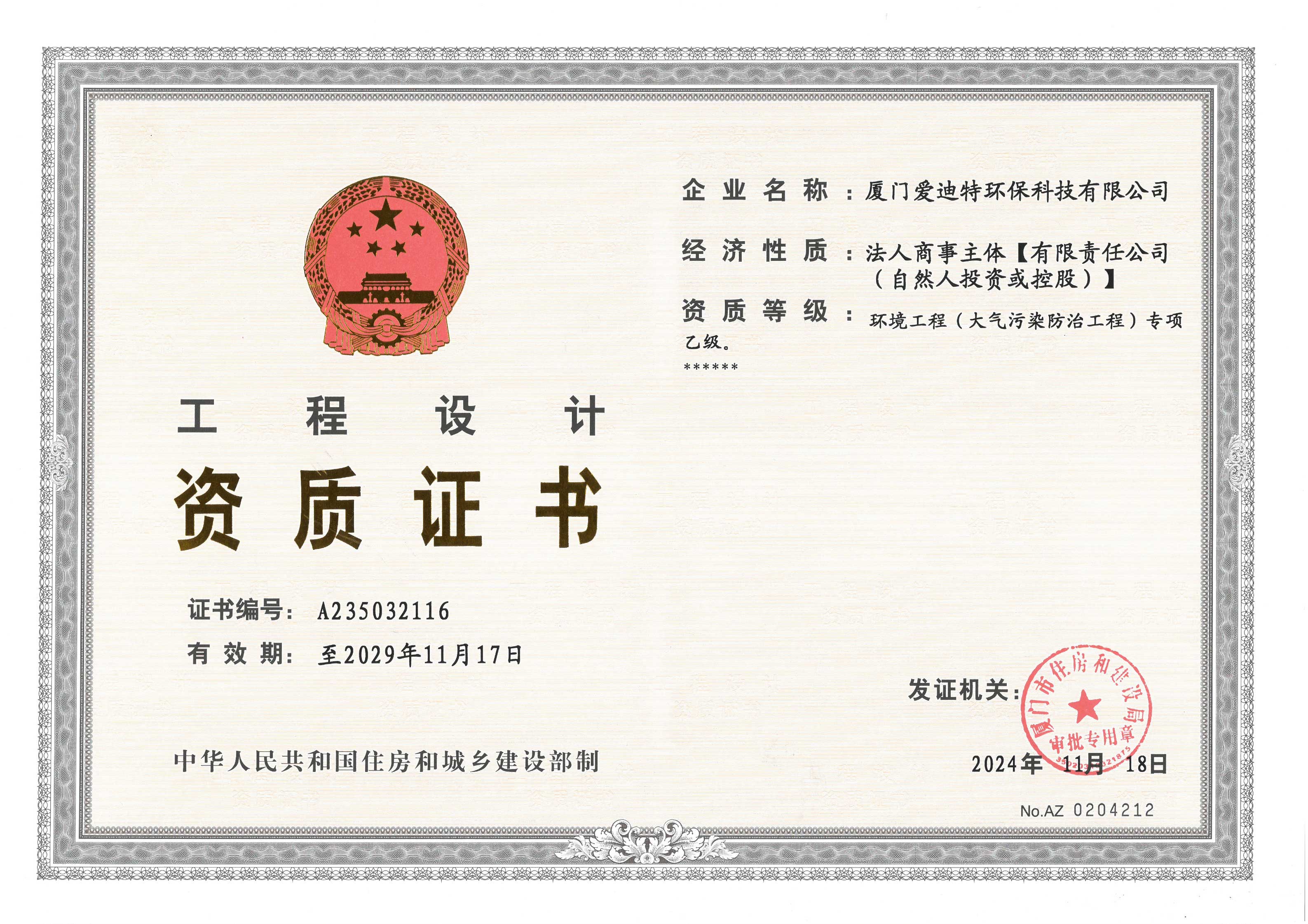 環(huán)境工程(大氣污染防治工程)專項(xiàng)乙級(jí)資質(zhì)